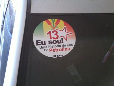 A turma do PSB em Petrolina já ficou na mira da justiça eleitoral, um dia desses, por estampar em vários veículos pela cidade um adesivo com os seguintes dizeres: “meu prefeito é 40”. Agora é a vez dos petistas incorrerem no mesmo risco.