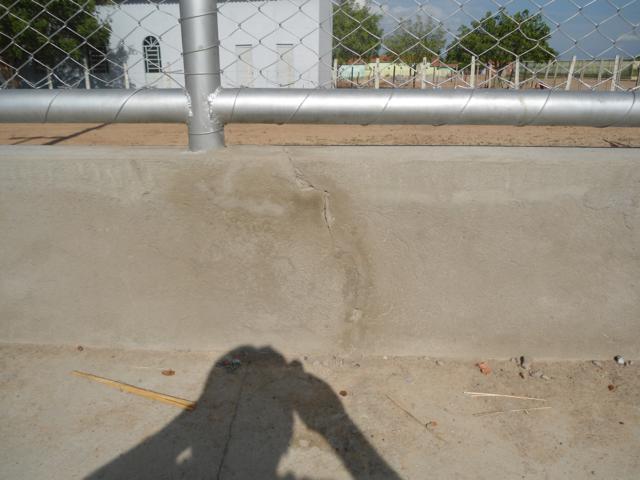 O muro que sustenta o alambrado teve que ser reconstruído, pois o cimento se esfarelava, mas já rachou. Parecia ser feito de areia. A quadra está pronta e só faltam os refletores, mas já tem aspectos de abandono”, afirmou.