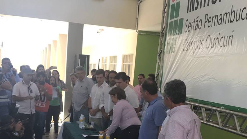 Um evento realizado na manhã de hoje (4) em Ouricuri (PE), Sertão do Araripe, reuniu diversas lideranças políticas de Pernambuco. A solenidade serviu para a assinatura da ordem de serviço referente à construção da quadra poliesportiva do IF Sertão-PE local.