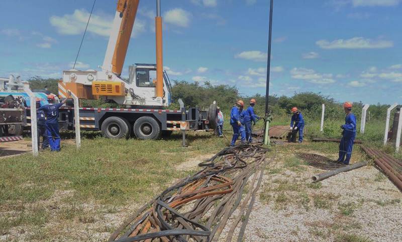 A Companhia investiu R$150 mil para reativar apenas um dos poços, que vai fornecer a vazão de 40 metros cúbicos (m³) de água por hora. Só para a compra de um novo conjunto de bombeamento foram destinados R$ 80 mil. O trabalho permitirá que mil famílias moradoras dos distritos de Né Camilo, Vila Francinete e Zé do Ouro, na área rural de Bodocó, além de Serrolândia, que fica em Ipubi, voltem a receber água nas torneiras a partir da próxima semana.