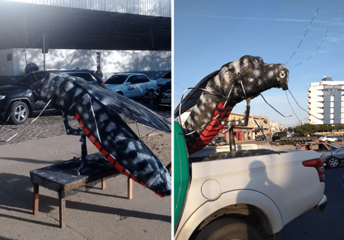 O ‘Monumento da Muriçoca’ – como foi apelidada a escultura de um pernilongo gigante – foi colocado na saída do terminal rodoviário e a notícia ganhou repercussão nas redes sociais. Muita gente disse que a arte seria uma forma de chamar a atenção do Poder Público Municipal para a infestação de muriçocas que ocorre na cidade, principalmente nos arredores da rodoviária.