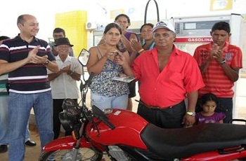 Além de bicicleta, TV e câmera digital – entre outros –, a grande expectativa era uma motocicleta Fan OK, que foi sorteada na sede de Santa Filomena. O felizardo foi Agenor Alves de Souza, mais conhecido na cidade como ‘Nozinho de Neco’, que reside em Trindade. Ele recebeu a chave das mãos da gerente Lígia Araújo. Este ano os postos Seriema prometem contemplar mais clientes da região.
