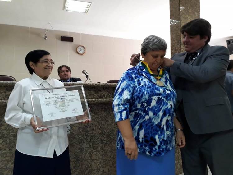 Uma solenidade iniciada logo após a sessão plenária desta quinta-feira (29) na Casa Plínio Amorim, no final da manhã, marcou a entrega do Diploma e da Medalha de Honra ao Mérito Dom Malan ao Instituto das Irmãs Medianeiras da Paz.