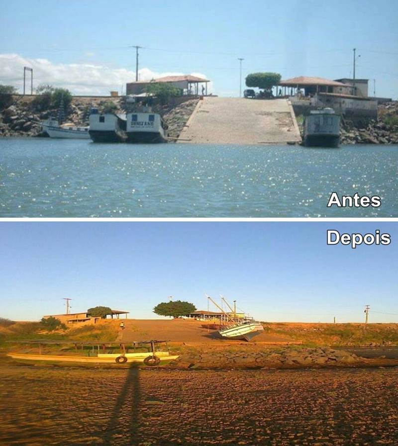 Com a falta de chuva na nascente do Rio São Francisco, o Lago de Sobradinho, no norte da Bahia, vive a maior seca de sua história. Devido à baixa vazão do reservatório, o Rio São Francisco foi recuando e está mostrando a sua pior face em várias cidades que ficam na borda do lago.