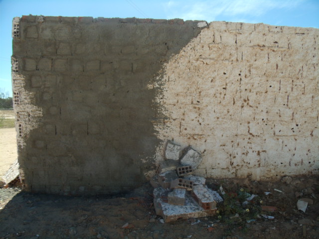 As rachaduras em grande parte do muro nas posições horizontais e verticais são visíveis, o que mostra o comprometimento da parede, que ainda oferece o risco iminente de desabar. Sem falar da falta de segurança contra ações de vândalos e criminosos.
