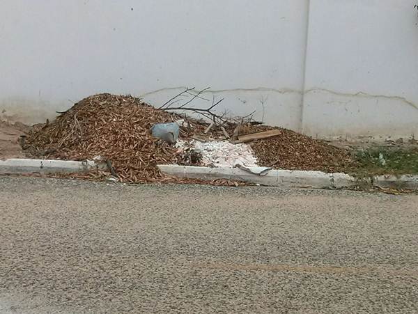 O Blog entrou em contato com funcionários do Conselho Municipal do Idoso e foi informado, por telefone, que os galhos foram deixados no local por um idoso que tem uma plantação numa horta ao lado, e que os próprios funcionários do CCI teriam entrado em contato com a Secretaria de Infraestrutura, mas a mesma não enviou funcionários ao local para recolher os materiais.