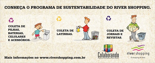 Quem for ao River Shopping nos próximos dias já poderá perceber algumas práticas que pretendem contribuir para a preservação do meio ambiente. Através do programa de sustentabilidade “Colaborando”, clientes e funcionários do centro de compras de Petrolina poderão, por exemplo, separar resíduos sólidos (metal, papel, vidro, plástico) em coletores instalados na praça de alimentação e no cinema.