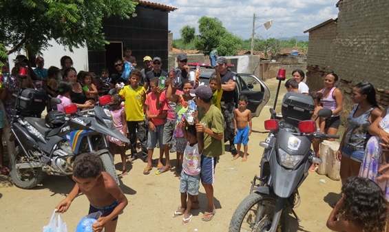 Policiais da Ronda Ostensiva Com Apoio de Motocicletas (Rocam) do 7º BPM na cidade de Ouricuri (PE), no sertão do Araripe, distribuíram brinquedos para crianças carentes de duas comunidades do interior e de um bairro da cidade de Bodocó (PE), também no sertão do Araripe.