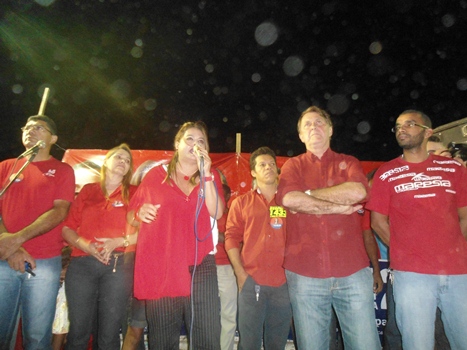 As famílias do Assentamento Catalúnia, na zona rural de Lagoa Grande (PE), Sertão do São Francisco, recepcionaram a prefeita Rose Garziera (PR), que tenta a reeleição, com uma grande festa no último sábado (15). O comício realizado pela coligação “Por Amor a Lagoa Grande” atraiu uma multidão, que também veio de outras localidades. Acompanhada do vice Valdin Rêgo (PDT) e dos candidatos a vereador, Rose começou enaltecendo a presença de todos no evento. “Quero agradecer a presença dos meus queridos companheiros do Jatobá, Vicentes, Malhada Real, Madre Paulina, Agroisa, Abreu e Lima, Triunfo, Ouro Verdes, Três Conquistas, Tanques, Riacho do Recreio, Malhada Bonita, Serra da Laje”, diz Rose.