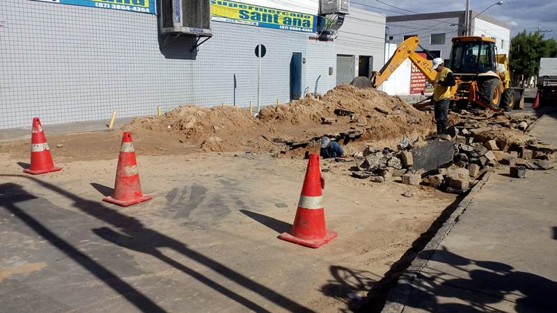 Após o susto de motoristas na manhã desta terça-feira (4) provocado por uma cratera formada na pavimentação asfáltica da Rua dos Estados Unidos, Bairro Areia Branca, que ‘engoliu’ parte de um caminhão, equipes da Compesa ainda trabalham no local. Desde então a via pública, que fica num cruzamento entre a Rua da Polônia e a Avenida São Francisco, foi interditada por conta do incidente.