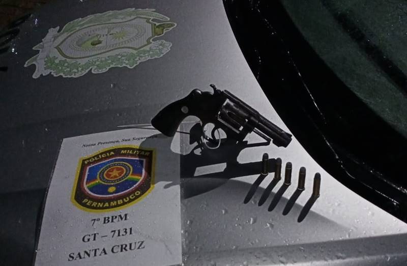 Policiais militares do 7º Batalhão prenderam na madrugada de hoje (15) em Santa Cruz (PE), Sertão do Araripe, um jovem de 21 anos. Durante patrulhamento ostensivo da equipe do 7º BPM, no Portal da Cidade, área central, ele foi flagrado com um revólver calibre 38, em sua cintura, com cinco munições intactas.