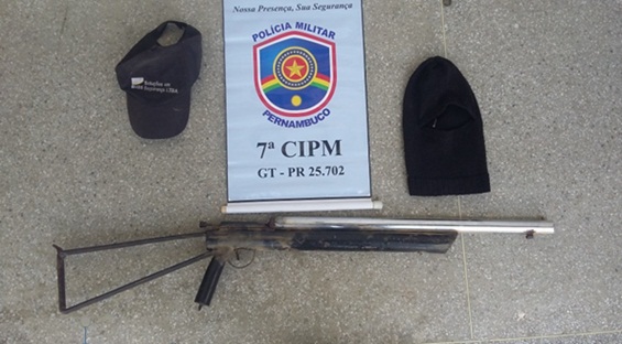 Além da arma, uma espingarda de fabricação caseira, a dupla ainda abandonou, durante a perseguição, uma touca ninja e um boné. O material apreendido foi encaminhado à Delegacia de Polícia Civil, para adoção das medidas legais. (foto/divulgação)