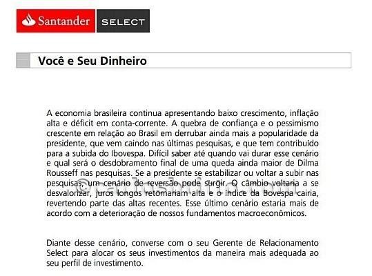 Santander irrita clientes ao enviar mensagem alertando que país ficará pior com Dilma