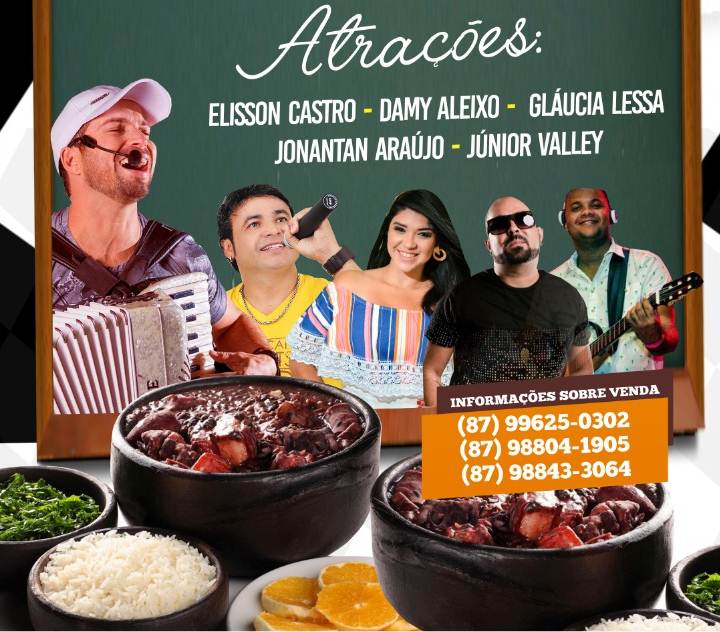 Uma feijoada beneficente em Petrolina vai ter a renda revertida para a Fundação Lar Feliz, instituição que cuida de crianças carentes no bairro Malhada da Areia, em Juazeiro (BA). O evento acontecerá neste domingo (27), às 12h, na Casa de Shows Zé Matuto, localizada no Loteamento Padre Cícero, zona norte da cidade. Elisson Castro, Damy Aleixo, Gláucia Lessa, Jonatan Araújo e Júnior Valley são as atrações da festa. Os ingressos custam R$ 20,00. Com mais R$ 3,00 a pessoa poderá participar de uma rifa que sorteará brindes. Para adquirir os ingressos, basta entrar em contato pelos telefones (87) 9 9625-0302/9 8804-1905/9 8843-3064.