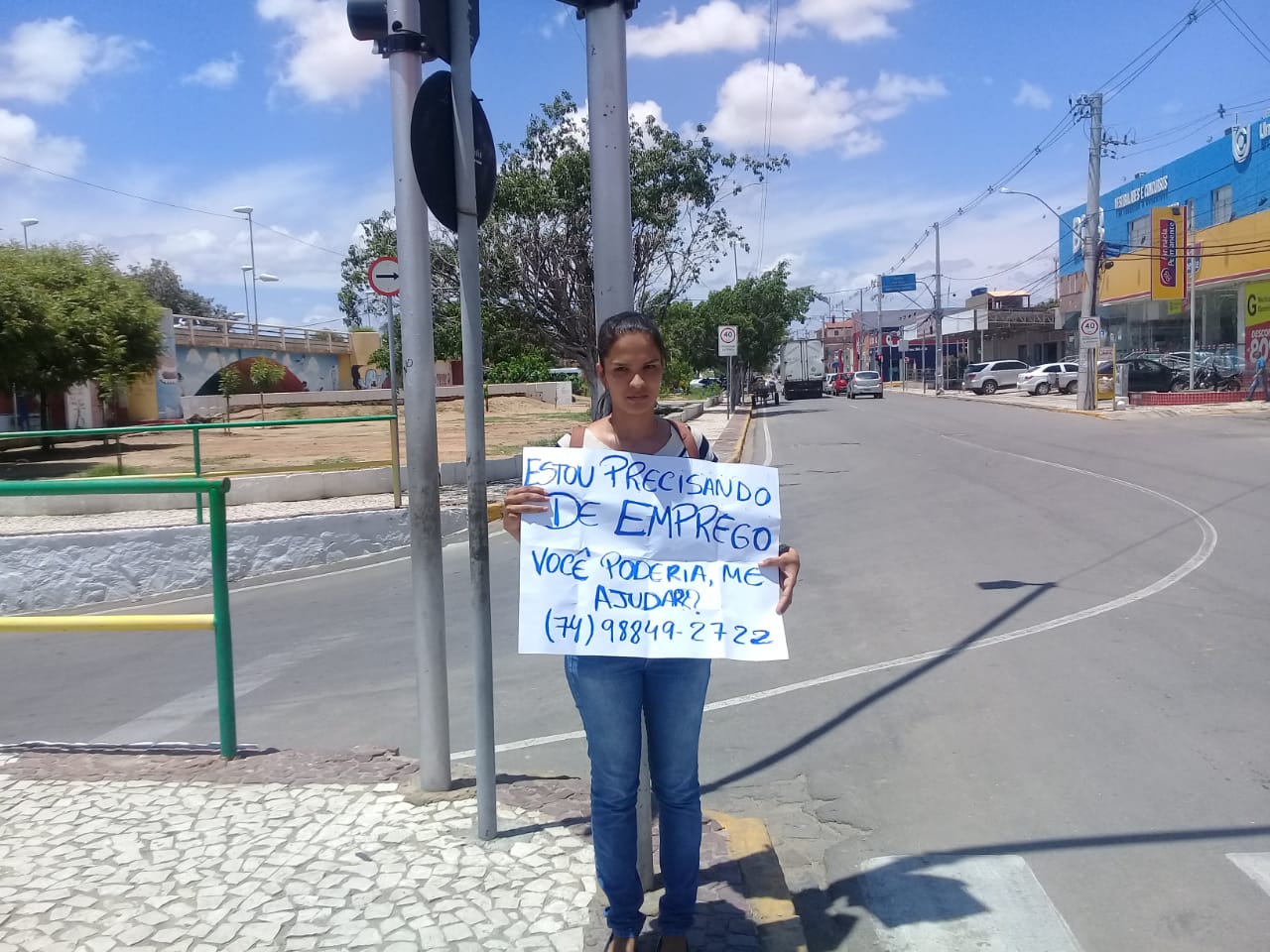 Jovem usa cartaz para pedir emprego em semáforo de Juazeiro