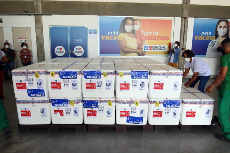 Nova remessa de vacinas contra Covid-19 chegarão à Bahia ainda hoje