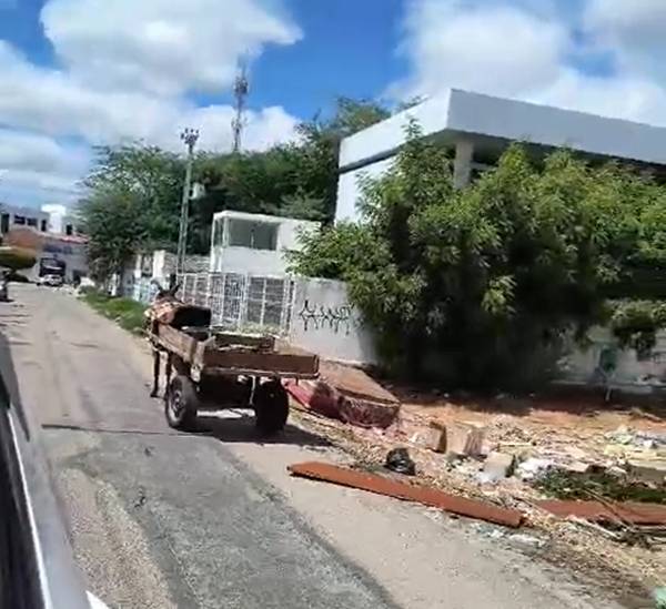 Flagrado jogando lixo em terreno, carroceiro tenta se esconder