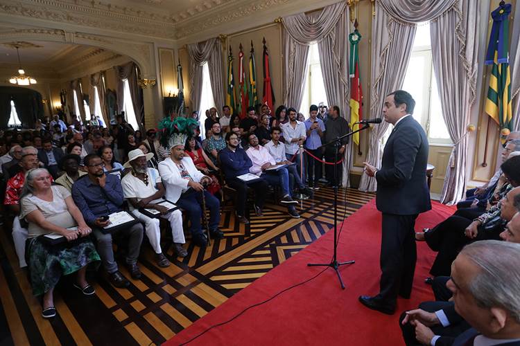 Em seu terceiro ano, o Prêmio Ariano Suassuna de Cultura Popular e Dramaturgia foi entregue nesta quinta-feira (21), em solenidade realizada no Palácio do Campo das Princesas. O evento, comandado pelo governador Paulo Câmara, contemplou oito vencedores na categoria Cultura Popular e seis em Dramaturgia. Na ocasião, o governador também assinou decreto autorizando a realização do Prêmio Palhaço Cascudo de Incentivo às Artes Circenses. A atual edição do prêmio registrou um total de 164 inscrições, sendo 101 na categoria Dramaturgia e 63 em Cultura Popular. Este último abrange as categorias Mestres e Grupos, que foram bonificados com R$ 10 mil e R$ 15 mil, respectivamente. Na área de Dramaturgia, o primeiro colocado recebeu R$ 10 mil e o segundo R$ […]