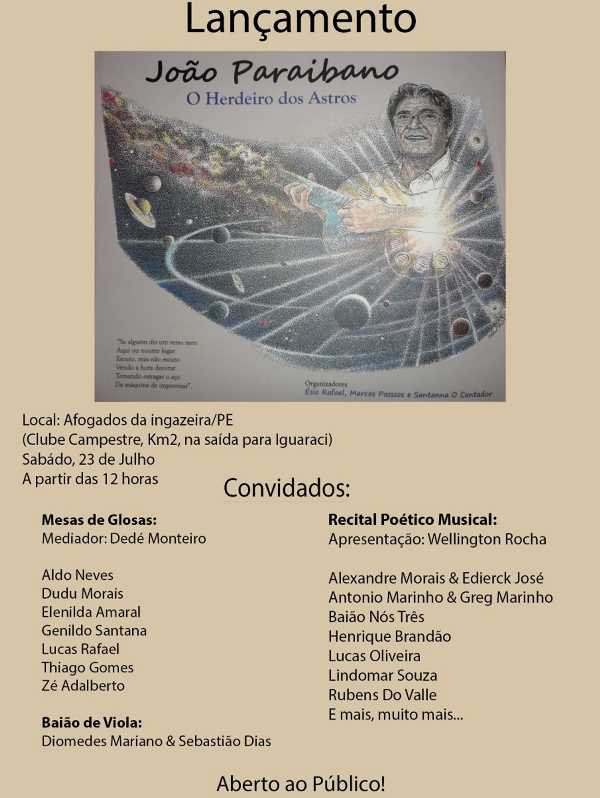 “Eu sou é sertanejo, o que não falta é causos pra contar“, já adianta o humorista Clênio Sandes, conhecido como ‘Mané Garapa’. Ele lançará na sexta-feira (22), a partir das 20h, na Praça Xisto Graciliano, em Santa Maria da Boa Vista (PE), Sertão do São Francisco, seu segundo DVD – “Poemas, Causos, Cordel, Poesias Matutas e muitas Lorotas”. Aprendiz de poeta, cordelista, declamador e humorista, Clênio levará para o lançamento um convidado ilustre: Maciel Melo. Mas além dele, outros artistas talentosos como Tico Seixas, Mariano Carvalho, Paulo Ferreira e Guiliard também farão parte do evento. A gravação do DVD teve a participação de Jessier Quirino, um dos maiores poetas do Nordeste. Mané Garapa ficou conhecido no mundo humorístico por unir em seus shows a poesia e a piada […]