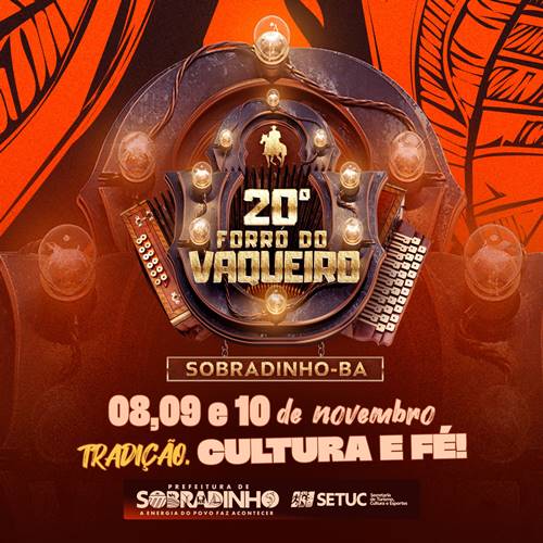 A tão esperada 20ª edição do Forró do Vaqueiro de Sobradinho (BA), no Norte da Bahia, que acontecerá de 8 a 10 de novembro, já tem programação confirmada. A grade artística foi divulgada pela Secretaria de Turismo, Cultura e Esportes da prefeitura municipal. Contando também com um lado cultural e religioso, o evento reúne centenas de vaqueiros e visitantes de todo o Vale do São Francisco e Norte da Bahia. No domingo (10) acontece o tradicional café da manhã dos vaqueiros, procissão, Missa e Forró da Espora. Já à noite os artistas se apresentarão no Pátio de Eventos Vaqueiro Bryan, onde será montada uma grande estrutura de som, palco e iluminação. “Definimos a programação ouvindo o desejo e as sugestões […]