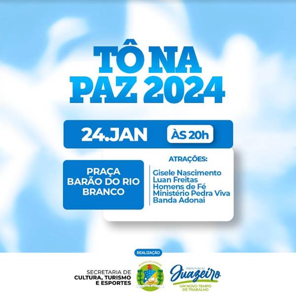 A 6ª edição do evento gospel ‘Tô na Paz’ trará, nesta quarta-feira (24), atrações diversificadas e promete atrair a presença do público evangélico e simpatizantes para a Praça Barão do Rio Branco, no Centro de Juazeiro (BA), a partir das 20h. Para essa edição, o tema do evento é ‘Tô na Paz 2024 – Juazeiro de todos nós’. A programação irá contar com muito louvor e adoração com os cantores Gisele Nascimento, Luã Freitas, banda Homens de Fé, além de atrações locais como o Ministério Pedra Viva e Banda Adonai. O ‘Tô na Paz’ tem as parcerias do Conselho de Pastores de Juazeiro (Copaj), da Confederação de Pastores, Obreiros e Líderes (CPOL), do Conselho de Pastores do Vale do São […]