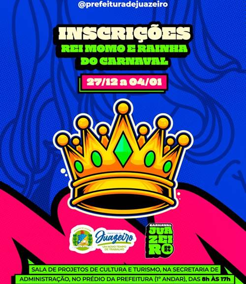 As inscrições para o concurso que irá eleger o Rei Momo e a Rainha, além das duas Princesas do Carnaval 2024 de Juazeiro 2024 começaram nesta quarta-feira (27) e seguem até o dia 4 de janeiro. Os interessados podem fazer a inscrição presencialmente na sala de Projetos de Cultura e Turismo da Secretaria de Administração (1º andar), que fica localizada na Praça Barão do Rio Branco, nº 01, Centro, das 8h às 17h. Entre os requisitos para se candidatar estão ter idade igual ou superior a 18 anos e residir em Juazeiro. É preciso levar documentos como RG, CPF e comprovante de residência. Especificamente para o Rei, o candidato deve ter mais de 100 quilos e apresentar documento que comprove […]