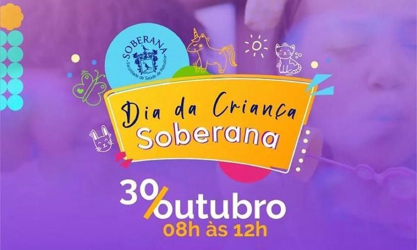 A Faculdade Soberana em Petrolina irá promover, neste sábado (30), o evento ‘Criança Soberana’, em alusão ao mês das crianças. A ação, gratuita e aberta ao público, acontecerá das 8h às 12h. “Será um dia repleto de diversão, brincadeiras, oficinas educativas e cuidados com a saúde das crianças”, destacou a organização do evento. Para participar os responsáveis pela criança deverá realizar a inscrição do filho (a) no site da instituição. Poderão participar crianças de quatro a oito anos de idade.