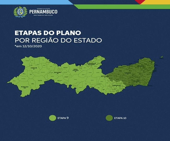 A partir da próxima segunda-feira (12), as Geres IX e X, encabeçadas pelas cidades-polo Ouricuri e Afogados da Ingazeira, no Sertão de Pernambuco, foram autorizadas a avançar para a Etapa 9 do Plano de Convivência com a Covid-19, após análise do Gabinete de Enfrentamento ao Novo Coronavírus no Estado. Ao todo, 23 municípios poderão ampliar os horários de funcionamento dos serviços de alimentação, como restaurantes, lanchonetes, cafés, bares e similares, que terão carga horária de funcionamento estendida em mais duas horas e passarão a operar das 6h até a meia-noite. A capacidade de lotação também será ampliada de 50% para 70%. Essas cidades também poderão reabrir cinemas e teatros sob novos protocolos, já com a autorização de venda e consumo […]