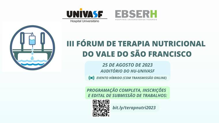 Com o objetivo de promover a qualificação e atualização científica na área de terapia nutricional para os profissionais de saúde de toda a região, membros do Comitê Multidisciplinar em Terapia Nutricional e nutricionistas do Hospital Universitário (HU-Univasf/EBSERH) realizarão o 3º Fórum de Terapia Nutricional do Vale do São Francisco O encontro acontece no próximo dia 25 de agosto, em formato híbrido e gratuito. Na programação estão incluídas mesas-redondas, palestra e apresentação de trabalhos científicos. Convidados de diversos serviços e instituições de saúde compartilharão experiências sobre temas como ‘Nutrição clínica na prática hospitalar’, ‘Abordagem multiprofissional na terapia nutricional do paciente com doença renal crônica’ e ‘Terapia nutricional enteral no âmbito domiciliar’. Os anais oriundos do evento serão submetidos para publicação na […]