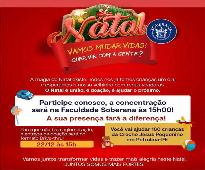 O Natal deste ano será difícil de esquecer para centenas de crianças do Bairro Idalino Bezerra, área central de Petrolina. Numa iniciativa da ONG ‘Água para Irmãos com Sede’, em parceria com a TV Grande Rio e a Associação dos Veteranos do Exército, mais de 200 brinquedos foram entregues a meninos e meninas carentes da comunidade, que nãos esconderam a alegria com os presentes. A ação aconteceu no final da tarde de hoje (25), Dia de Natal, e seguiu todos os protocolos sanitários referentes à prevenção ao novo coronavírus (Covid-19). Para animar o momento, uma Mamãe Noel na Frevuca tocando músicas natalinas conseguiu emocionar muita gente. Um lindo exemplo de cidadania.