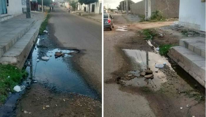 Os moradores da Rua Ataulfo Alves, no Bairro Ouro Preto, zona oeste de Petrolina, não escondem o aborrecimento por conta de um esgoto estourado naquela via pública. Eles reclamam da fedentina insuporável provocada pelo odor dos dejetos. Segundo informações enviadas através do WhatsApp do Blog, o problema já dura vários dias. A água suja escorre por boa parte da rua, além e ficar acumulada na calçada da residência nº19. Os moradores clamam urgentemente por uma solução da Compesa, responsável pelo setor. (foto/divulgação)