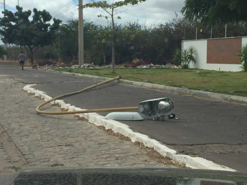 Um poste na orla de Petrolina veio abaixo e por pouco não atinge pessoas que praticam cooper ou caminhada no calçadão e veículos estacionados nas proximidades.