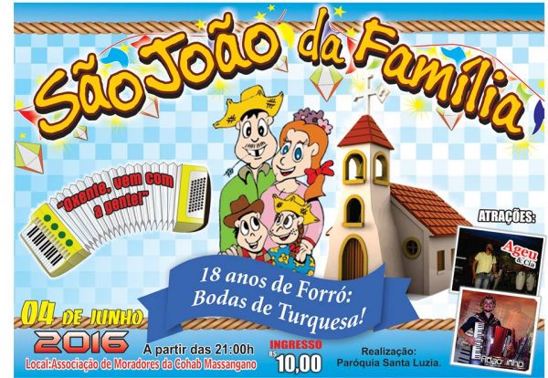 A Paróquia Santa Luzia, localizada no bairro Cohab Massangano, zona oeste de Petrolina, realizará no próximo sábado (4) mais um ‘São João da Família’. Esta é a 18ª edição do evento, que completa este ano bodas de turquesa. A festa, tradicional entre as famílias da comunidade, acontecerá na Associação de Moradores do bairro. O ingresso custa R$ 10 e já está à venda na paróquia. Segundo os organizadores, toda a renda do evento será direcionada para a conclusão das obras do Centro Administrativo da paróquia. Dentro desse projeto está prevista ainda a construção de uma cozinha comunitária, que deve oferecer cursos gratuitos à população. A festa começa às 21h e será animada pelo cantor Ageu e pelo sanfoneiro Adãozinho de […]