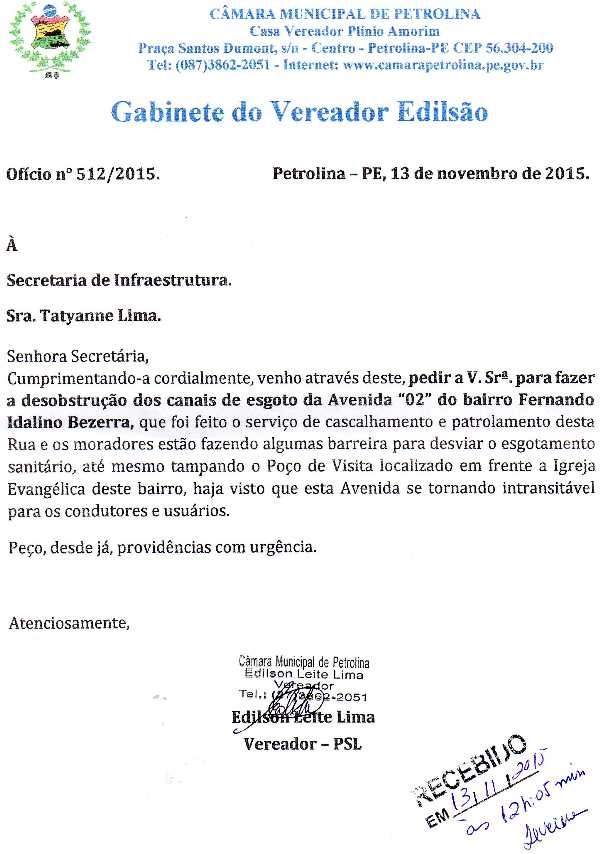 Em nota enviada a este Blog pela sua assessoria, o vereador Edilsão do Trânsito respondeu aos questionamentos de comunitários do bairro Rio Jordão, zona oeste de Petrolina, os quais não escondem seu aborrecimento com um esgoto que vem provocando discórdia na Rua 7 daquela comunidade. Confiram a íntegra da nota: Em resposta à matéria postada no dia 16 de novembro de 2015 sobre o problema no esgotamento sanitário da Rua 7 do Rio Jordão, publicado no Blog, o vereador Edilsão gostaria de esclarecer que no último dia 13 de novembro do corrente ano, preocupado em solucionar o problema do esgotamento sanitário do Rio Jordão, solicitou à Secretaria de Infraestrutura a desobstrução dos canais de esgoto da Avenida 2 do bairro […]