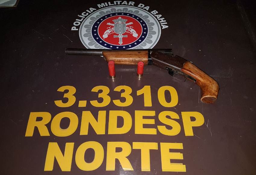 Um homem que estava ameaçando vizinhos no povoado de Marruá, no Salitre, zona rural de Juazeiro (BA), foi preso na noite de ontem (16) por policiais militares da Rondesp Norte (Companhia da PM). Após denúncias, a equipe se dirigiu ao local e constatou o fato. O acusado, Jaime Neves de Almeida, foi flagrado com uma espingarda calibre 12, municiada com dois cartuchos – um deles ainda estava intacto. Ele foi detido e encaminhado à Delegacia de Polícia Civil (DPC), juntamente com a arma apreendida, onde foi autuado em flagrante. (foto/divulgação)