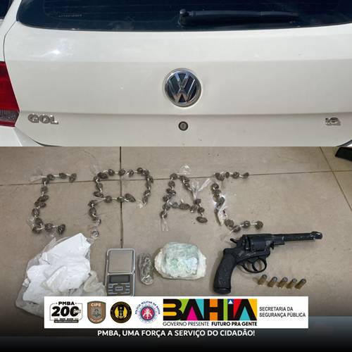 Uma ação integrada entre a Companhia Independente de Policiamento Especializado (CIPE-Caatinga) e a CIPE/Chapada, ambas unidades da Polícia Militar da Bahia (PMBA), culminou com a prisão, ontem (30), de dois homens por porte ilegal de arma de fogo e tráfico de drogas em Juazeiro (BA). Os PMs realizavam rondas ostensivas na BR-407, povoado do Cipó, na zona rural, quando foram informados que um Volkswagen Gol, de cor branca, estava circulando naquela área e sendo utilizado para o tráfico de drogas. Ao avistarem o veículo e realizarem abordagem, foi encontrado no seu interior um revólver calibre 44, de uso restrito, com cinco munições intactas, um pacote de cocaína, 58 trouxinhas de maconha e uma balança de precisão. Após trocas de informações […]