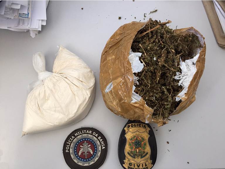 Dois homens foram presos com quase meio quilo de cocaína em Remanso, no norte da Bahia, no dia de ontem (23). Segundo informações da 25ª Companhia Independente de Polícia Militar (CIPM), a prisão de Maelson Silva Santos e Tiago Mendes Galvão aconteceu em parceria com a Polícia Civil da cidade. A dupla estava com 410 gramas de cocaína, 220 de maconha, além de uma balança de precisão para a pesagem da droga. Os indivíduos foram encaminhados à Delegacia de Polícia Civil de Remanso, onde foram autuados em flagrante delito. (foto: Ascom 25ª CIPM/divulgação)