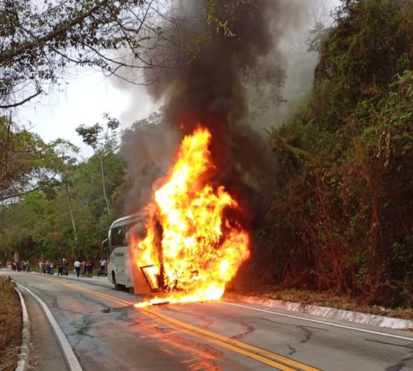 Carro é destruído por incêndio no Viaduto dos Barranqueiros