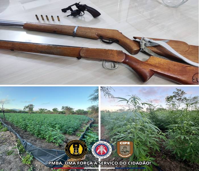 Nessa quinta-feira (27) a Companhia Independente de Policiamento Especializado (CIPE-Caatinga) e a Polícia Federal (PF) erradicaram uma plantação de maconha na cidade de Andorinha (norte da Bahia). A operação resultou na destruição de 61 mil pés da erva, em uma área de aproximadamente um hectare. Durante a ação, um homem foi preso em posse de duas espingardas artesanais, um revólver calibre 32 com cinco munições intactas e uma porção de erva seca de maconha. O material apreendido e o acusado foram encaminhados para a Delegacia da PF em Juazeiro (BA), onde serão tomadas as medidas legais cabíveis.