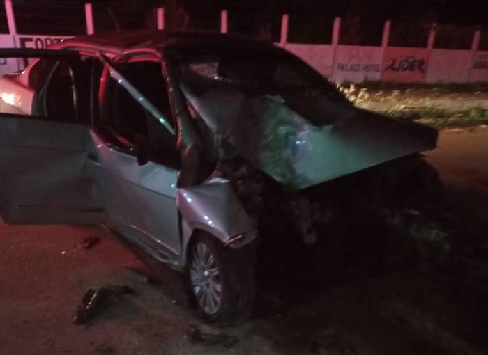 Um grave acidente registrado na noite de ontem (2) em Casa Nova, norte da Bahia, chamou atenção de curiosos. O condutor de um carro de passeio chocou-se violentamente contra uma árvore localizada numa avenida central da cidade. Ainda não há detalhes sobre feridos, mas em vídeos que circulam pelas redes sociais ouve-se um grito de mulher reclamando de muita dor. Até o momento o Blog não obteve informações sobre o que teria causado o acidente.