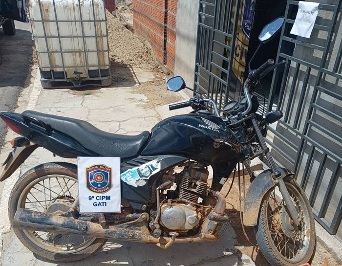 Policiais militares da 9ª Companhia Independente em Trindade (PE), Sertão do Araripe, recuperaram no começo da tarde de ontem (22) uma motocicleta com registro de roubo/furto. O fato ocorreu na Vila Saraiva, área central da cidade. Segundo o boletim, a moto – uma Honda CG 125 preta – foi encontrada após abordagens da equipe da 9ª CIPM/Gati na Rua Rui Barbosa. O condutor do veículo também foi localizado e conduzido, juntamente com a moto, à delegacia local da Polícia Civil (PC).