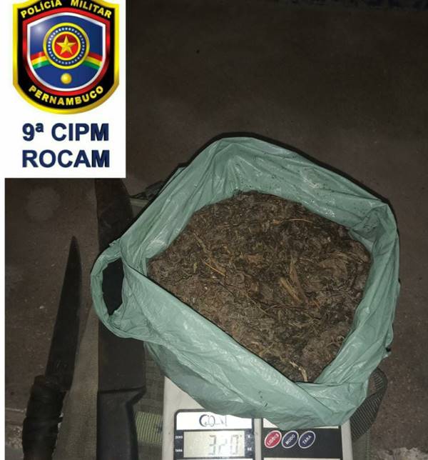Policiais Militares da 9ª Companhia Independente, juntamente com a equipe Malhas da Lei, apreenderam em Araripina (PE), Sertão do Araripe, na madrugada desta terça-feira (8), um total de 320 gramas de maconha pronta para o consumo. O fato ocorreu na Vila Bringel, área central da cidade. A equipe da polícia recebeu a informação de que, no local, estaria havendo comercialização de drogas e perturbação do sossego. Ao chegarem ao endereço denunciado, os PMs fizeram buscas e abordagens. Durante a ação, um homem foi detido. Também foram apreendidas, além da maconha, uma balança de precisão e duas facas. O homem foi conduzido à delegacia local.