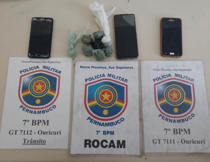 Policiais militares do 7º Batalhão (BPM) prenderam três jovens na tarde de ontem (3), em Ouricuri (PE), Sertão do Araripe. Com idades de 20, 21 e 22 anos, eles são acusados de posse e tráfico de entorpecentes. O primeiro a ser abordado foi o jovem de 20 anos, que estava em atitude suspeita próximo à sede local da Compesa, na BR-316. Ele acabou confessando que comprava o produto ao de 21, o qual foi localizado pela equipe do 7º BPM. Com ele foram encontrados 4 gramas de maconha. O jovem disse aos policiais que estaria negociando a compra de mais drogas a um ambulante (o terceiro acusado, de 22) e que o ponto de entrega seria em frente à sua […]