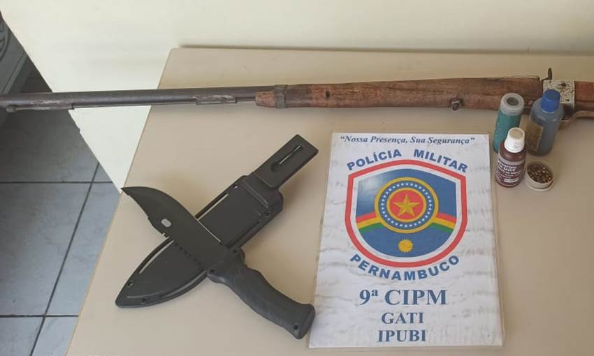 Um homem foi conduzido à Delegacia de Polícia Civil (PC) em Ipubi (PE), Sertão do Araripe, no dia de ontem (8), após ameaçar moradores do Sítio Bom Jardim, na zona rural, um dia antes. Segundo relatos de populares, o acusado estava de posse de uma espingarda e um punhal. Ele inclusive teria chegado a efetuar disparos com a arma de fogo para intimidar as vítimas. Após denúncia, a equipe da 9ª Companhia Independente de Polícia Militar (CIPM) se deslocou ao local e conseguiu prender o homem. Ele confessou aos policiais que já tinha passagem na justiça pela prática de homicídio. Após ser detido, o homem e o material apreendido foram encaminhados à DP local.