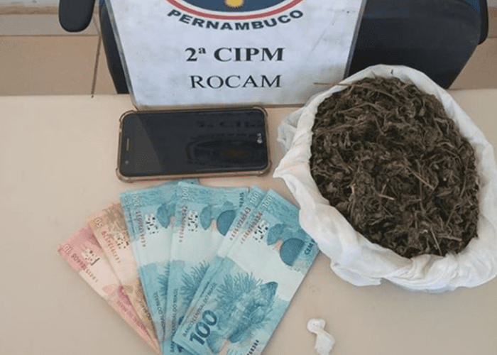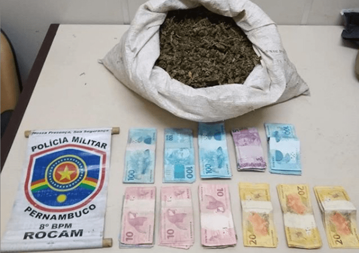Um homem foi preso em flagrante por tráfico de drogas na Aldeia Lagoinha, zona rural de Salgueiro (PE), Sertão Central, nesta sexta-feira (28). Policiais militares do 8º BPM chegaram ao local, após informações da equipe Malhas da Lei de que haveria comercialização de entorpecentes no endereço. Ao ser questionado, o homem confessou o crime. Com a informação do acusado, os PMs encontraram aproximadamente 4,1 kg de maconha enterrados no terreiro da propriedade. Já no interior da residência havia R$ 4,169,00 em espécie. O homem e o material apreendido foram encaminhados para Delegacia da Polícia Civil (DPC) de Salgueiro.