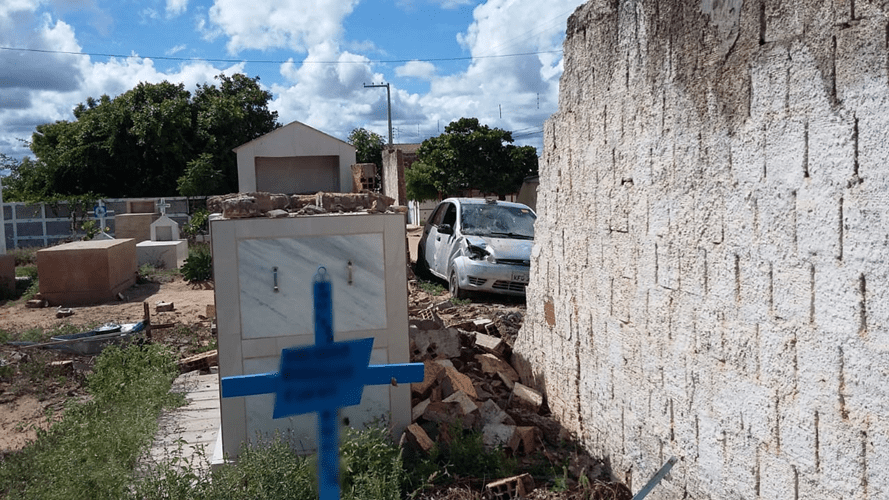 No último final de semana o condutor de um veículo Ford Fiesta atingiu a lateral do muro do cemitério Campo da Paz, no Bairro Henrique Leite, área central de Petrolina. Segundo informações de populares, o motorista estaria embriagado, derrubando pelo menos 10 metros do muro. Procurada pela reportagem, a Secretaria de Infraestrutura, Mobilidade e Serviços Públicos (Seinfra) respondeu, por meio de nota, que “está identificando o condutor para tomar as medidas cabíveis”.