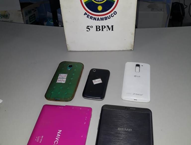 Policiais do 5º Batalhão de Polícia Militar (BPM) recuperaram três celulares e dois tablets durante rondas na Avenida das Nações, área central de Petrolina, na madrugada de hoje (1º/06). Na ocasião, um homem fugiu ao avistar o efetivo, abandonando os aparelhos no local. O material apreendido foi entregue na Delegacia de Polícia Civil (DPC) do Bairro Ouro Preto, zona oeste da cidade.