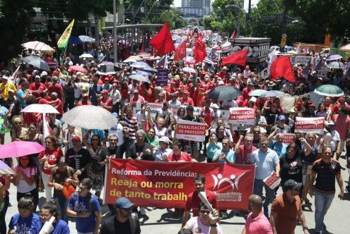 As ruas de Petrolina foram palco de protestos nesta manhã de sexta, 31, no dia nacional de mobilização nacional. O movimento foi puxado pela Frente Brasil Popular de Petrolina que é formada por 18 instituições no município. O ato reuniu trabalhadores, sindicalistas, funcionários públicos, líderes comunitários e políticos de partidos de esquerda. A pauta principal do protesto foi contra o projeto terceirização no mercado de trabalho em todas as áreas, proposta aprovada pelos deputados federais na semana passada, além das reformas da previdência e trabalhista. A caminhada saiu da Praça do Bambuzinho, centro da Cidade. O movimento realizou a primeira parada em frente à Prefeitura Municipal. Com música, palavras de ordem e até uma ciranda, os trabalhadores cobraram dos parlamentares […]