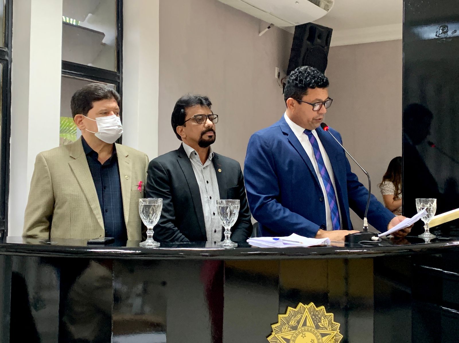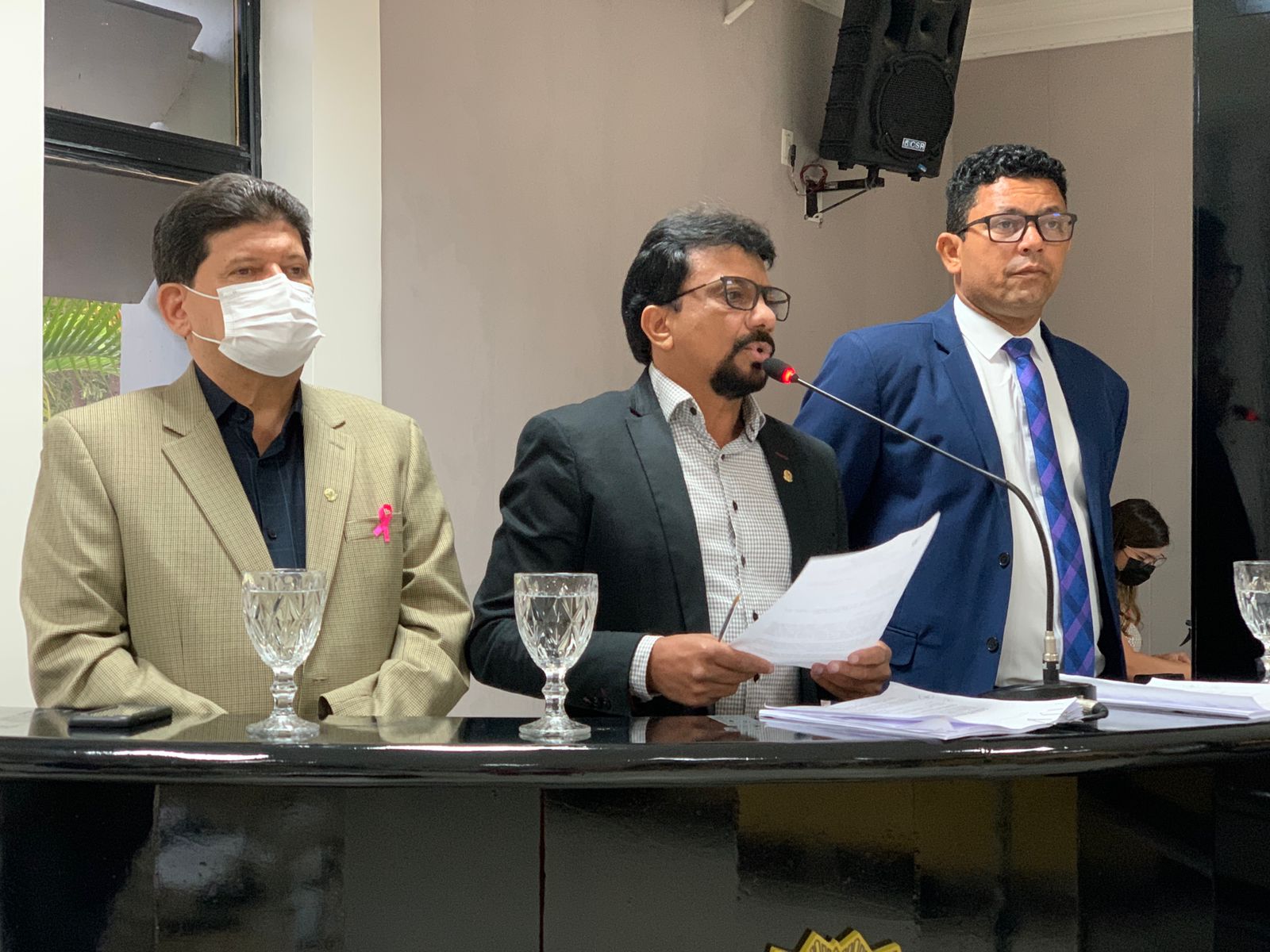 Sem a presença dos vereadores, Maria Elena, Rodrigo Araújo, Wenderson Batista e Edilsão, na reunião plenária desta terça-feira (19), os autores do Projeto de Decreto Legislativo nº 070/2021, que pretende conceder o Título Medalha de Honra ao Mérito Legislativo Dom Malan ao Presidente Jair Messias Bolsonaro (sem partido), decidiram tirar a proposta de pauta. De acordo com Ruy Wanderley, sem os vereadores citados não haveria quantidade suficiente de votos favoráveis, uma vez que alguns parlamentares já tinham declarado que iriam se abster da votação e outros votariam contra. Com isso, o projeto deverá retornar na pauta da próxima sessão legislativa, na quinta-feira (21).