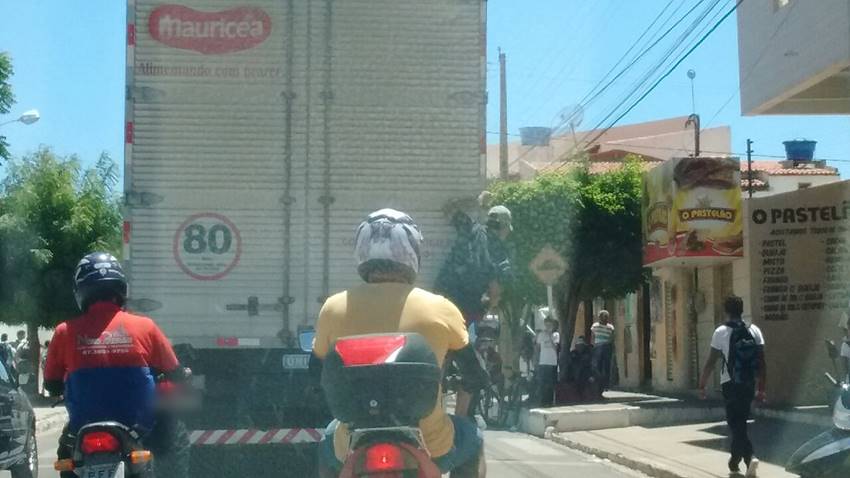 Flagrante: Homem se pendura em traseira de caminhão em avenida do Bairro José e Maria